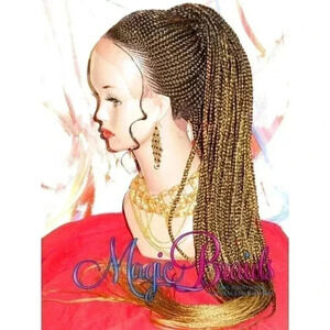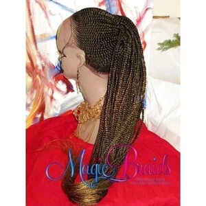 Fully Braided full lace frontal closure WIG Micro braids corn rows Color #2/27 ombre 18" to 26" long LILY with box braids100% hand made Gorgeous introducing lace wig braided, whole head braided like your own, as natural as it could get, extremely light weight, any style you want