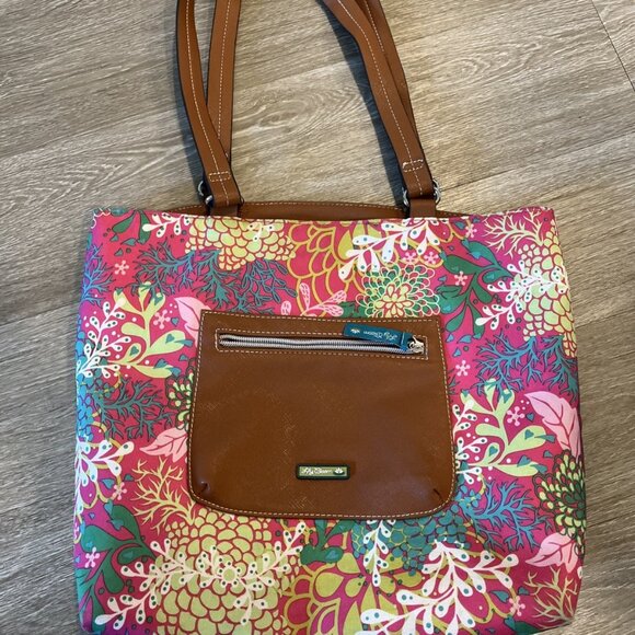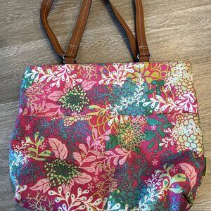 Lily bloom pink floral coral reef shoulder tote bag purse.