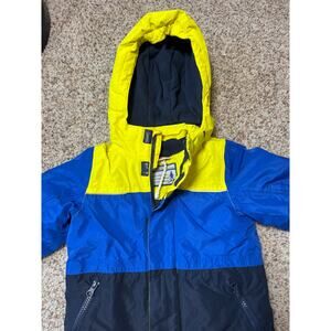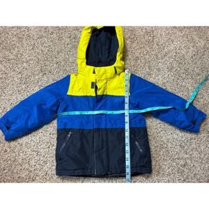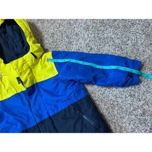 LILY & DAN BOYS Winter Coat/Jacket; SIZE 3T; Yellow, Black & Blue, snow skirt, Removable zip off hood.