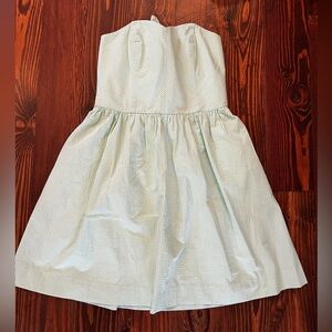 Darling Lily Pulitizer green and white seersucker strapless dress with sweet tie in the back. Great preowned condition with no flaws to note.