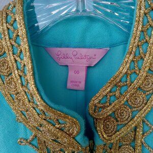 LILY PULITZER Jane Shift Dress Turquoise Gold Designer Cruise Resort Size 00