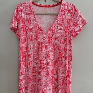 LILY PULITZER Med ETTA Mizner Red Maxi T-Shirt Dress Seaside Harbour