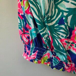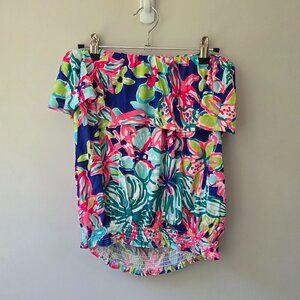LILY PULITZER Ruffle Strapless Top | Small | Bright Floral Smocked Waist