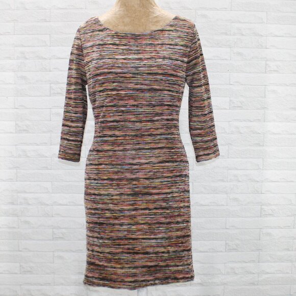 LILY ROSE Dress Knit Striped Body Con Form Fitting Rainbow Colorful Stretch LG
