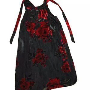 LILY ROSE Velvet Red Roses Dark Floral Tie Back Dress Size S MSRP $48