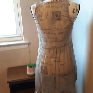 LILY WHITE SHEER BEIGE BOHO TUNIC MINI DRESS JUNIORS SIZE? L