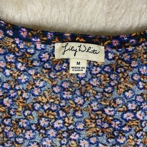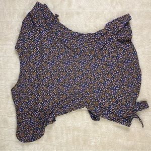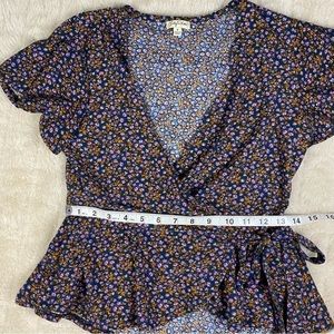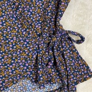 Vibes: so cute. Sort of a wrap top, there’s a button on the right side and then the wrap ties together