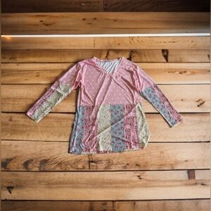LILY by Firmiana Tunic Top Womens L Large FLORAL PINK Blue POLKA DOT Shirt