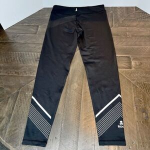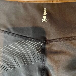 LILYBOD WOMEN’S SOULCYCLE BLACK COLOR WHITE STRIPES HIGH WAIST LEGGINGS SIZE M .
