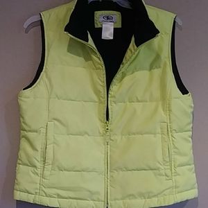 Lime Green Puffer Vest with black fleece lining