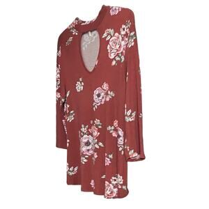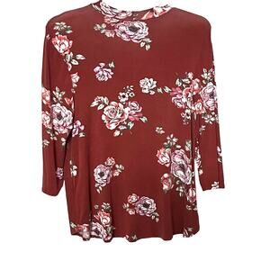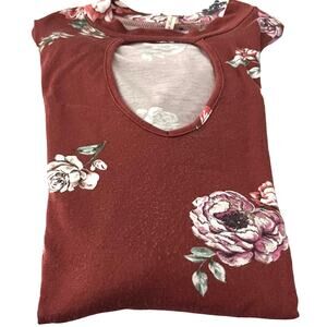LIME N CHILI LONG SLEEVE, CUT OUT KEYHOLE NECK, WOMENS, L, BURNT ORANGE FLORAL
