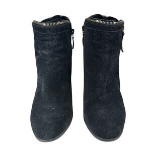 From Limelight come these super cute dual zipper ankle boots! In black genuine suede leather, they feature a chunky heel and both inside and outside zippers! Silver hardware, zipper top edge! 3.5" heel, 3.75" rise, 10" opening at top, Size 9M! Excellent! Superb EUC Condition! ***ABSOLUTELY GUARANTEED CONDITION: EUC MINTY-EXCELLENT TO LIKE NEW, by Lily @HauteClub!*. Offers welcomed!***