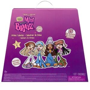Mini Bratz advent calendar set with vibrant packaging. Includes colorful designs featuring Bratz characters.