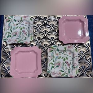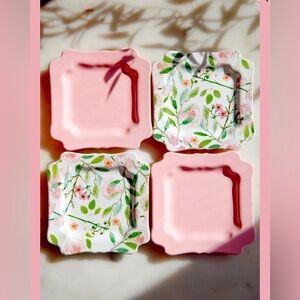 Each set comes with four plates: two floral and two pink. Each plate is 6 x 6 x 0.79 inches.