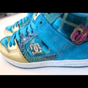 These fun and beautiful DC shoes are perfect for hanging out with friends, skating or even just to show off. There are several colors on this shoe - aqua, gold, purple, etc. that are perfect for making a bold statement. ***I have used these shoes only on a few rare occasions mostly because I wasn't able to wear them anywhere (private school problems). I love them but they deserve a better home. Thanks!