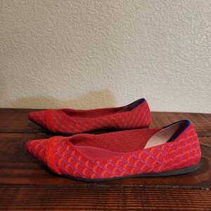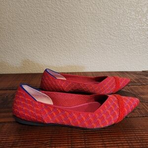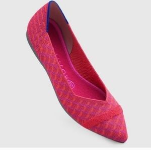 Rothy's The Point Ballet Flats. In retired style Pomegranate Grid with vibrant pink, red, orange and blues. Slip on style.