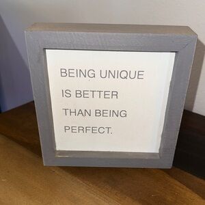 Elevate your space with this gray inspirational wall art. Featuring the motivational quote 'Being Unique is Better Than Being Perfect,' it's perfect for adding a touch of positivity to any room.