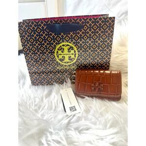 LIMITED TIME SALE - NEW $200 Tory Burch Flap Card case keychain crocodile wallet