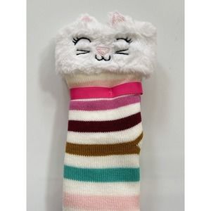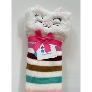 LIMITED TOO Girl Slipper Socks Multicolor White Acrylic Fleece Lined Cat OneSize