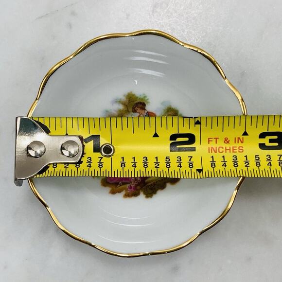 LIMOGES France Mini Trinket Dish Courting Couple Gold Gild Scalloped Edge EUC