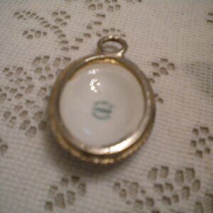 LIMOGES France Porcelain Oval PENDANT Goldtone Metal Hand Painted Vintage 2"