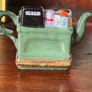 LIMOGES PEINT MAIN OLD GENERAL STORE COUNTER TEAPOT Trinket Box France