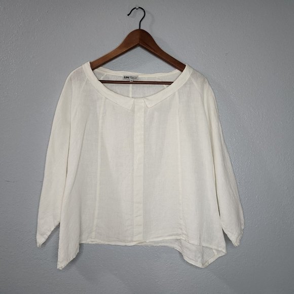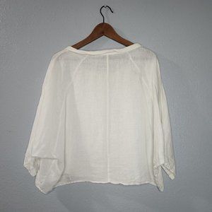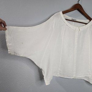 LIN Nature Womens Size 46 White Victorian Sheer Linen Dolman Blouse Top Batwing