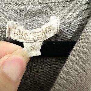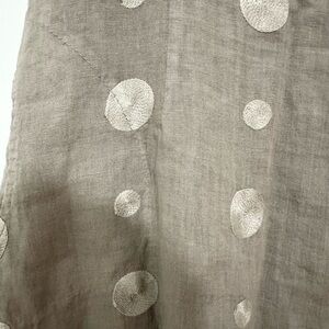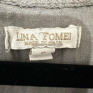 LINA TOMEI Italy Short Dress Embroidered Taupe Linen Sleeveless small