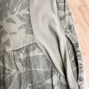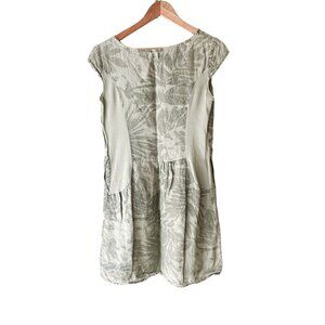 LINA TOMEI Linen Dress Made in Italy Green Tropical Leaf Pattern L