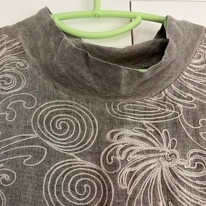 LINA TOMEI Made In Italy Linen Embroidered Shift Dress Cowl Neck Size small