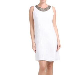 LINA Tomei Linen Round Beaded Neck Sheath Dress