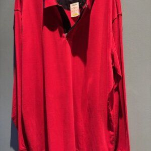 This is a new with tags (NWT) men's LINCS DC & Co long sleeve polo shirt in size XL. The shirt is made of sueded cotton in a vibrant red color with a collared neckline and a button closure. It is designed in a solid pattern with a spread collar style, making it suitable for casual, business, or party/cocktail occasions. The shirt features a logo accent and is machine washable for easy care. Perfect for a stylish and comfortable look for various events. Activewear. Athleisire.
