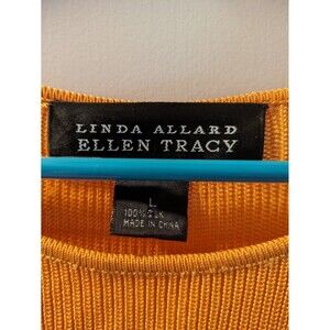 LINDA ALLARD ELLEN TRACY BUTTER YELLOW SILK STRETCH KNIT TOP L