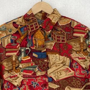 LINDA ALLARD ELLEN TRACY Blouse 6P Silk Ancient Explorer Button Up Vintage Red