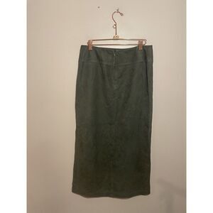 LINDA ALLARD ELLEN TRACY Vintage Leather Skirt Long Pencil High Slit Sz 6 Green