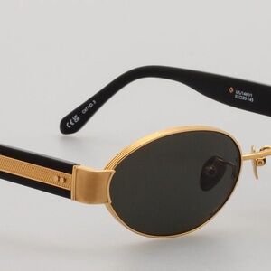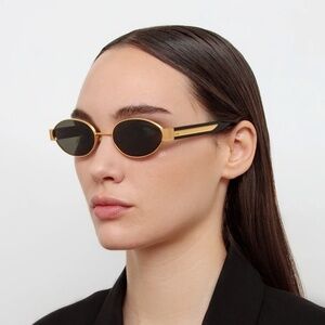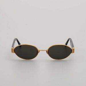 The Sadie Oval Sunglasses in Yellow Gold, feature an oval shape and sleek black temples, these sunglasses exude sophistication.