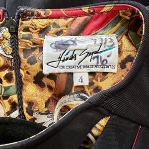 LINDA SEGAL, WOMENS BLACK PENCIL DRESS WITH FLORAL LINING. SIZE 4