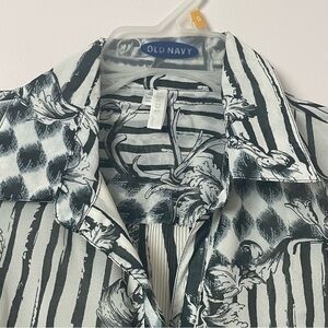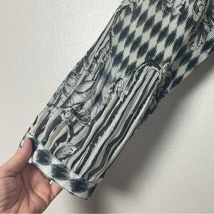 LINDI Asymmetrical Button-Down Shirt Ruffle Detail Black/White Size Medium