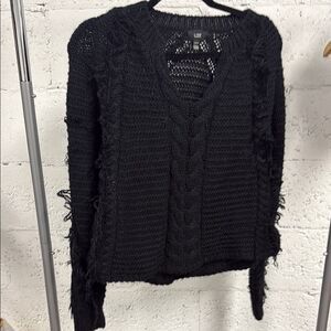 LINE Black Cable Knit Sweater - Fringed - Size XS - BRAND NEW Sweater