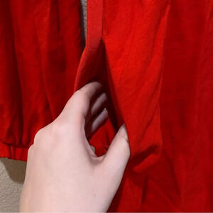 LINE & DOT Button Back Dress Red Square Neck Long Sleeve Pockets Size Large