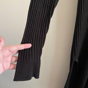LINE The Label Women XS Black Ribbed Knit Side Slits V-Neck Long Duster Cardigan.
