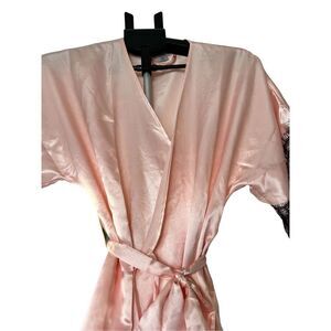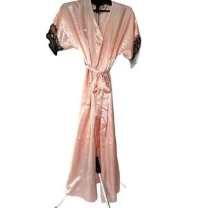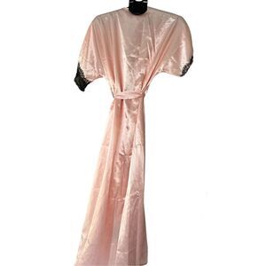 LINEA DONATELLA Maxi Solid Pink Boudoire Chemise Satin Robe Set NWT S/M/P/M