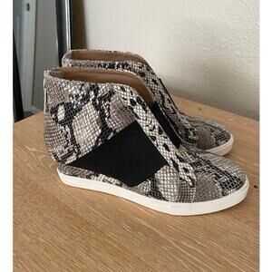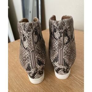 LINEA PAOLO Booties 6.5 M FELICIA Wedge SNEAKERS Snakeskin Black White back of ankle Zip in great used condition. Cute , fun sneakers with some pizazz...