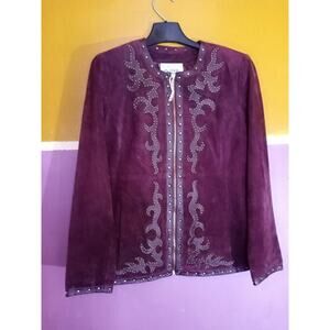LINEA by LOUIS DELL'OLIO Maroon Suede With Genuine Leather Trim Coat. Size: XS. Condition is Pre-owned. Shipped with USPS Priority Mail.