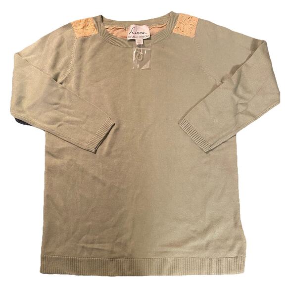 The LINEA by Louis Dell'Olio Green Sweater in XXS is a feminine and elegant pullover sweater with a lace back detail. This tight-knit sweater features a round neck and 3/4 sleeves, making it perfect for various occasions like travel, church, weddings, parties, workwear, and business meetings. Made from a comfortable cotton blend material, this lightweight and stretchy sweater is lined for added comfort. The green color and solid pattern add a touch of designer style to your outfit, suitable for all seasons.