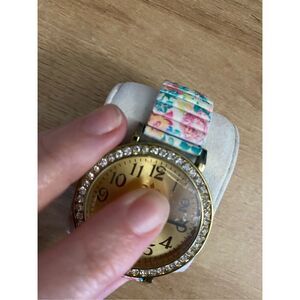 LINEL Floral Stretch Band Watch Crystal Bezel Expansion Band Wristwatch