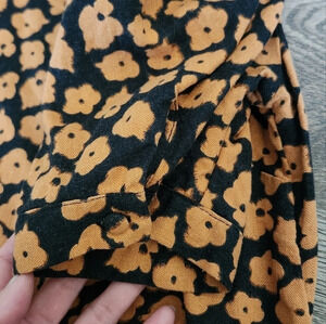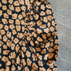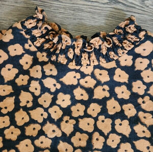 Linen blend dress with pockets, keyhole in back with 2 buttons at neck. Ruched puffed sleeves with single button.