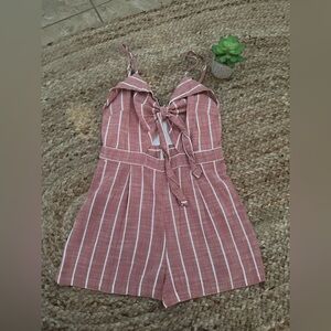 red and white striped linen romper with tie front cut out spaghetti straps adjustable
