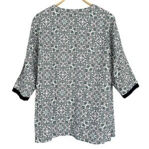 LINEN Tunic Jones New York size XL Blouse Top Geometric Navy Grosgrain NEW