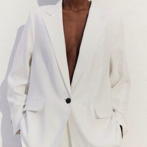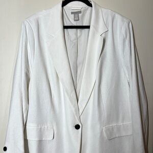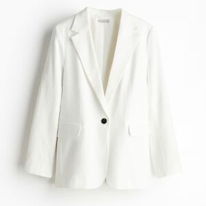 Single-breasted blazer in a woven linen blend. Notched lapels, one button at front, and welt front pockets with flap. Shoulder pads, a decorative button at cuffs, and a vent at back. Lined.
